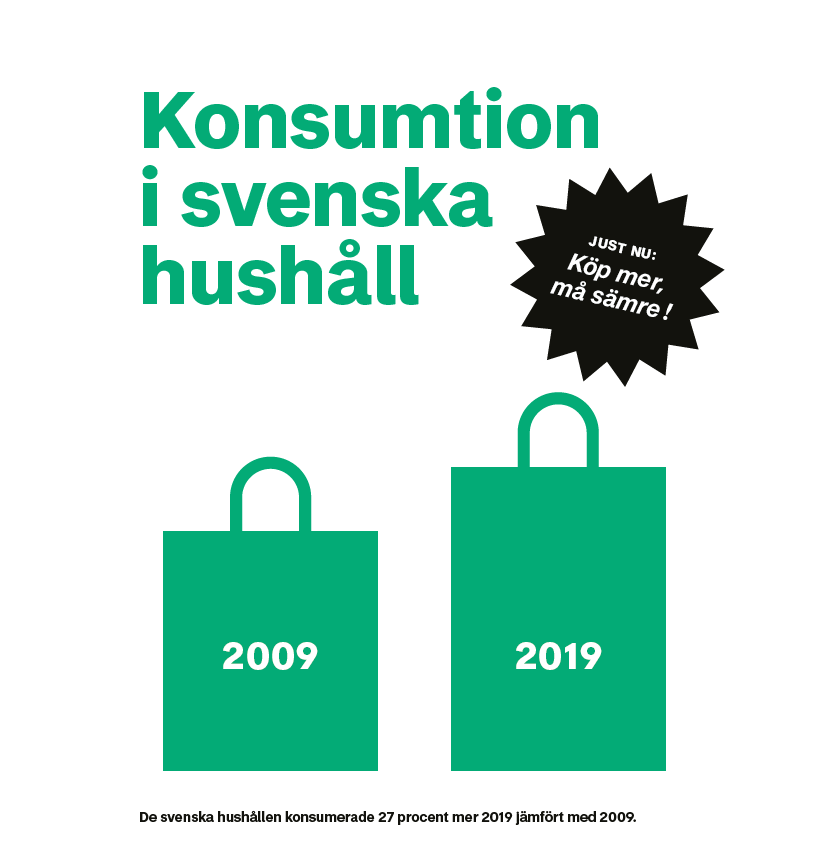 Boken Konsumindre kom ut under black week 2025. Vi finns på sociala medier och i vanliga medier. Här kan du följa oss och kontakta oss. Har du avstått ett köp? Posta på sociala medier och tagga med #konsumindre så märker vi att vi är fler. 89% vill att politiker ska göra mer för klimatet. Visa att du är en av oss genom att #konsumindre.