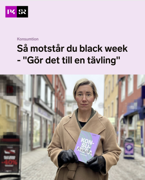 Boken konsumindre släpps nu under black week. Vi finns på sociala medier och i vanliga medier. Här kan du följa oss och kontakta oss. Har du avstått ett köp? Posta på sociala medier och tagga med #konsumindre så märker vi att vi är fler. 89% vill att politiker ska göra mer för klimatet. Visa att du är en av oss genom att #konsumindre.